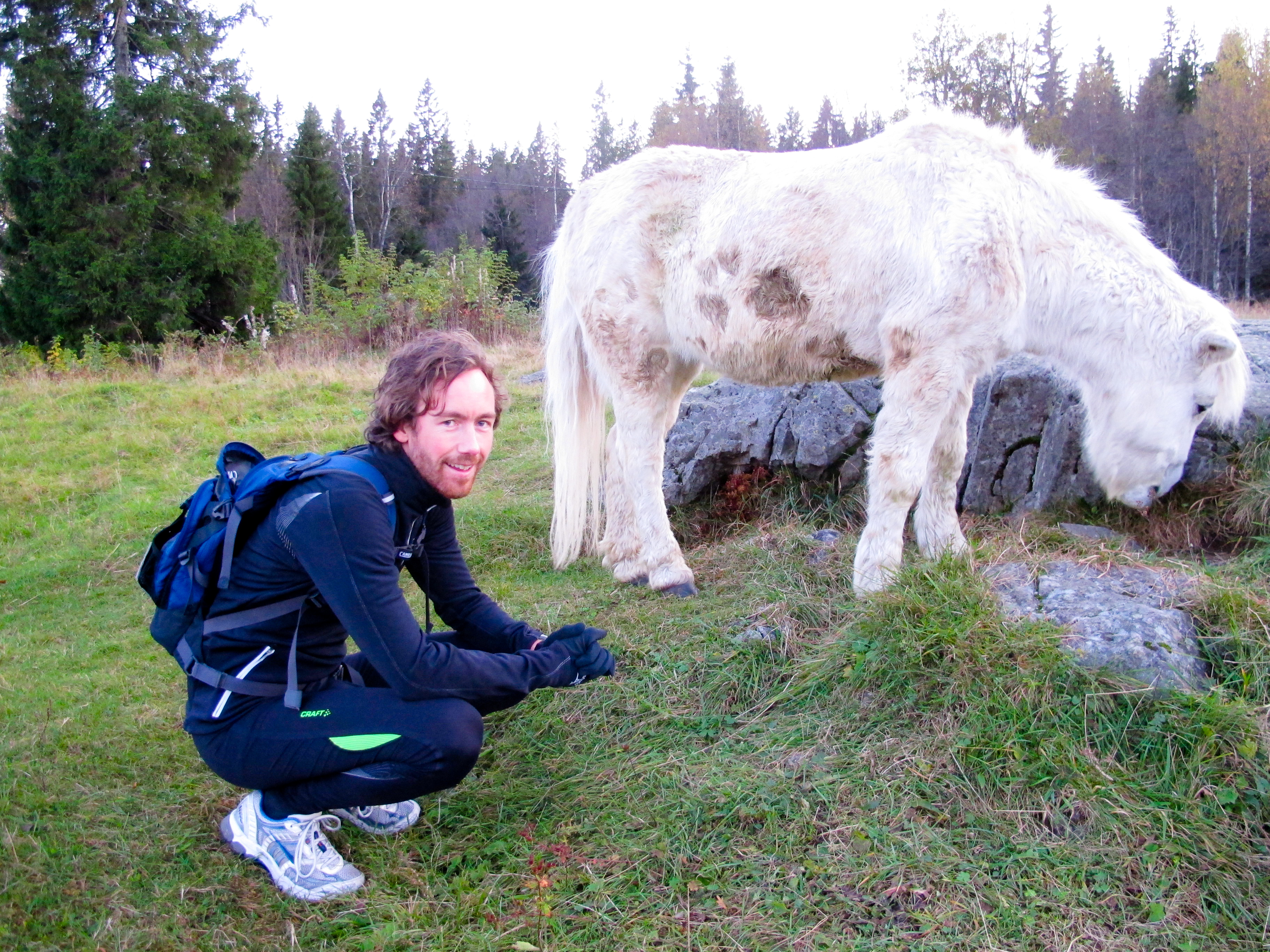 Det var fryktelig gøy i marka! Vi møtte for eksempel en hest.
